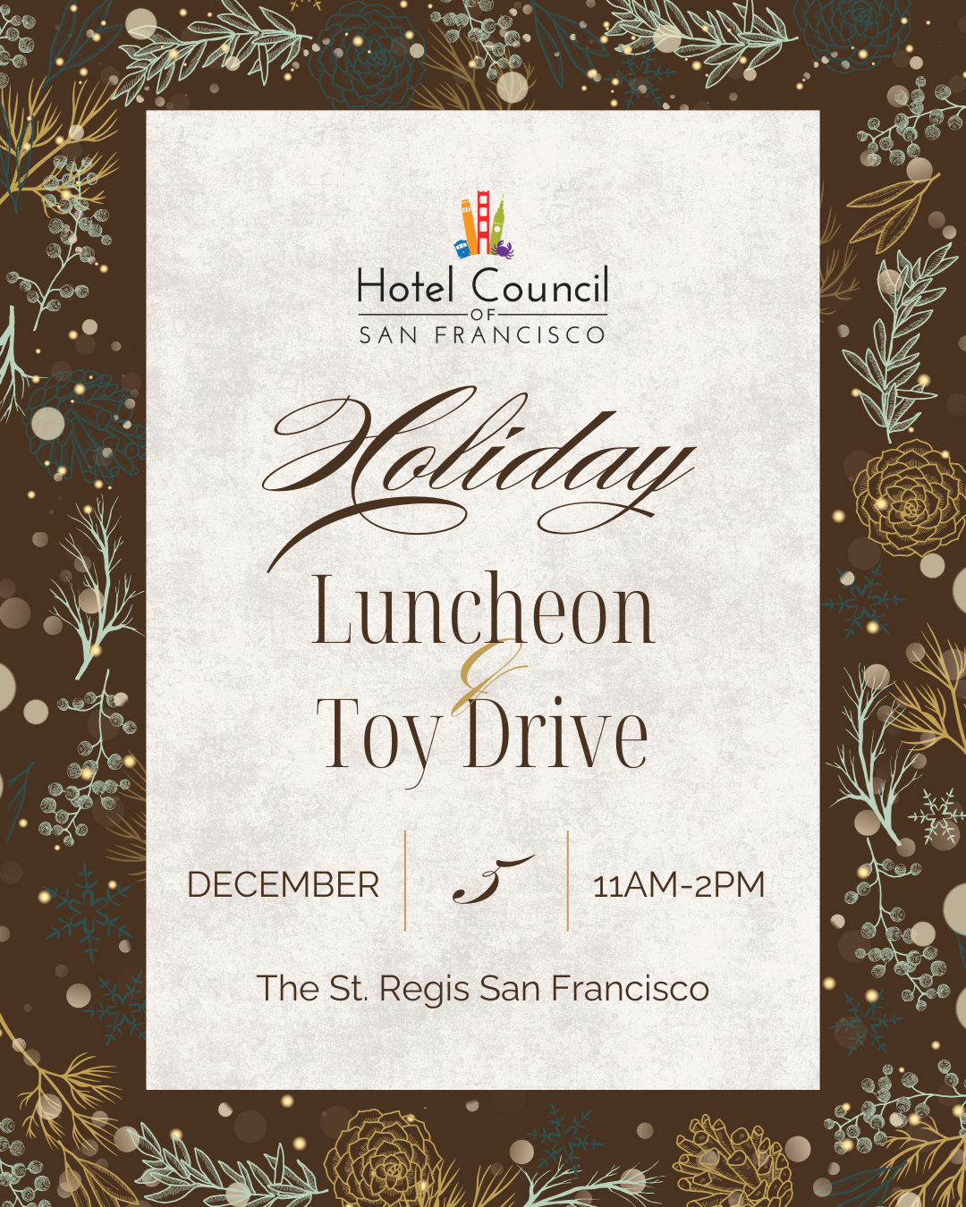 Hosted at the prestigious St. Regis San Francisco, this event brings together Hotel Council members, special guests, and city officials in a festive atmosphere that marks the official start of the holiday season. Don't miss this opportunity to make a difference and connect with industry leaders!